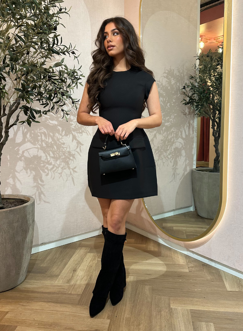 De Aimee Dress is een elegante, getailleerde mini-jurk met kapmouwen en een ronde halslijn. Deze jurk is uitgevoerd in een stevige stretchstof die mooi aansluit op het lichaam en zorgt voor een comfortabele pasvorm. De decoratieve klepzakjes aan de voorzijde geven de jurk een subtiele, stijlvolle twist. Perfect voor zowel een dag op kantoor als een diner in de avond. Verkrijgbaar in zwart, bruin en bordeaux.
