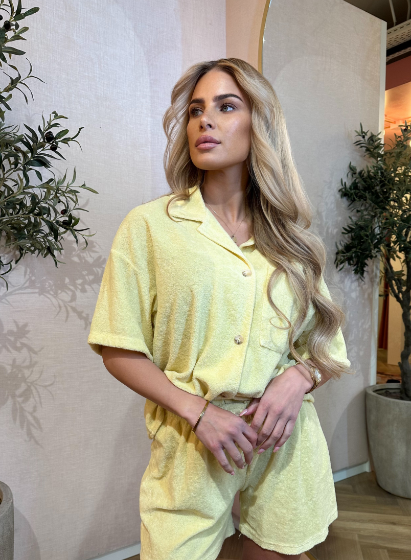 De Betty Set is dé perfecte match tussen comfort en stijl. Gemaakt van zachte badstof en ontworpen met een losvallend shirt met knoopsluiting en een short met elastische tailleband. De luchtige stof en relaxte pasvorm maken deze set ideaal voor warme dagen, strandwandelingen of gewoon om lekker in te loungen.