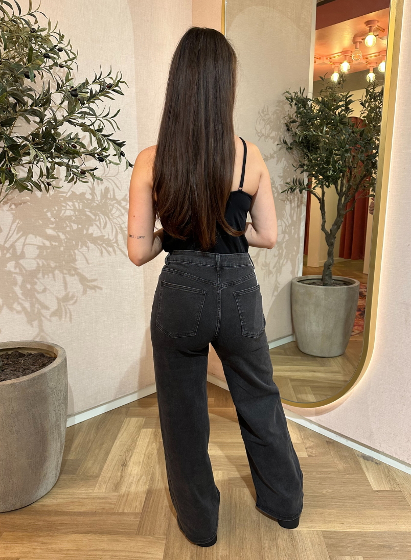 De Carly Jeans – Dark Grey is een moderne essential voor elke garderobe. Deze jeans heeft een flatterende high-waisted pasvorm en rechte pijpen die zorgen voor een elegante, tijdloze look. De donkergrijze wassing geeft de broek een stoere, chique uitstraling — perfect te combineren met zowel casual truien als vrouwelijke tops. Gemaakt van stevig maar zacht denim met een vleugje stretch voor ultiem draagcomfort. Een echte musthave voor dit fall/winter seizoen!