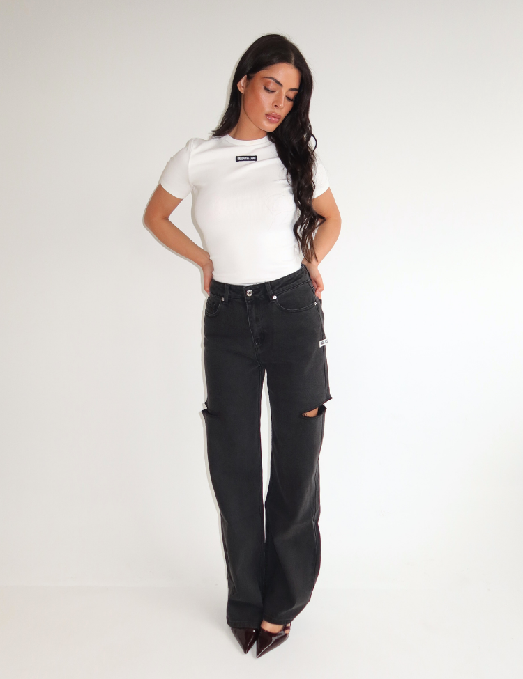 De June Wide Leg Jeans van Unique The Label is dé musthave voor jouw everyday look. De jeans heeft een relaxte pasvorm met wide leg fit en een stoere ripped details op de benen. Gemaakt van stevig denim in een zwarte wassing die perfect matcht met elke top – van basic tanktops tot oversized blouses. Met zijn high waist fit creëert de June Jeans een flatterende shape en effortless vibe, helemaal on-trend dit seizoen. Verkrijgbaar in meerdere kleuren.