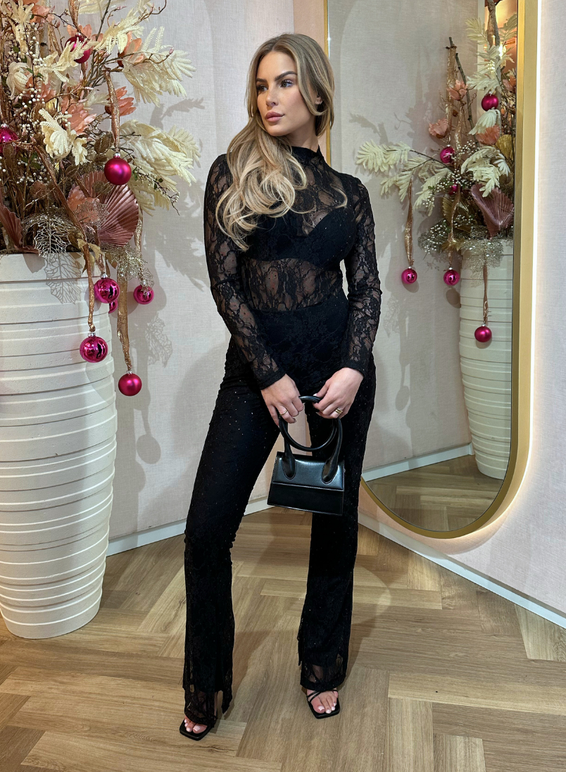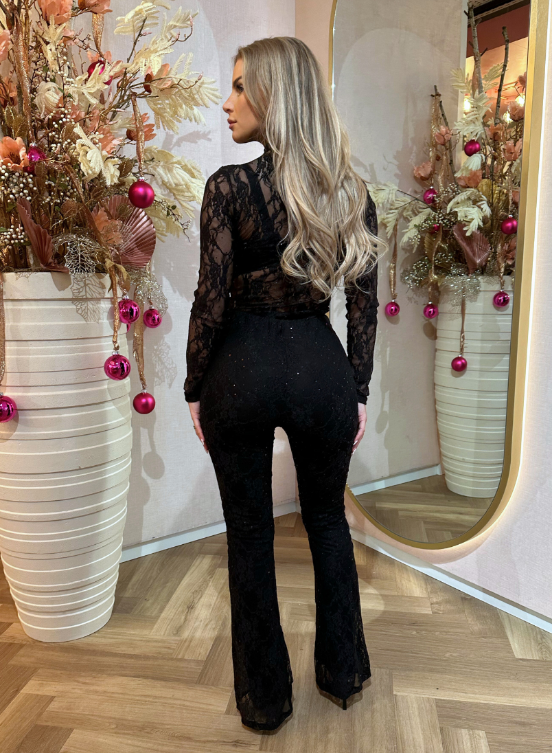 Zwarte lace bodysuit met zwarte glitters