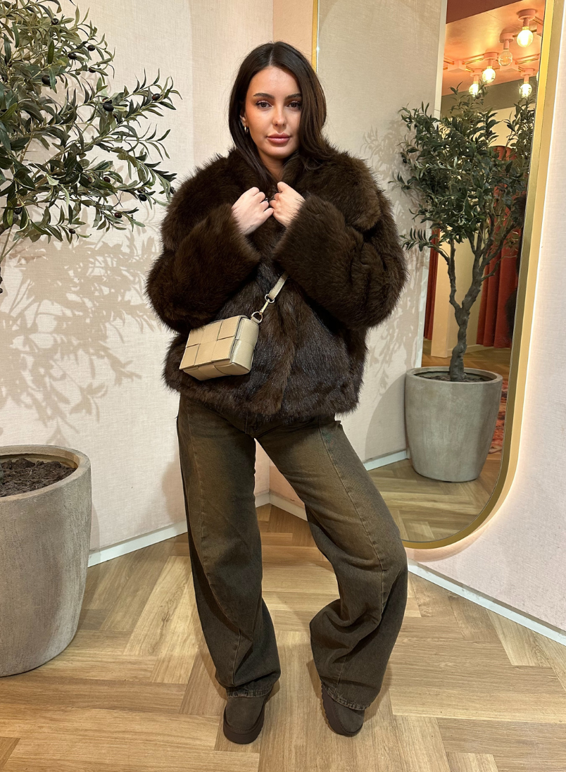 De Scarlett Fur Jacket – Brown is hét ultieme statement item voor dit seizoen. De jas is gemaakt van superzachte faux fur in een diepe bruine tint en heeft een luxueuze uitstraling die elke outfit een chique touch geeft. Dankzij de oversized fit en volle kraag blijf je heerlijk warm tijdens koude dagen, zonder in te leveren op stijl. Combineer met jeans en laarzen voor een fashionable everyday look, of draag ‘m over een jurk voor een classy avondoutfit.