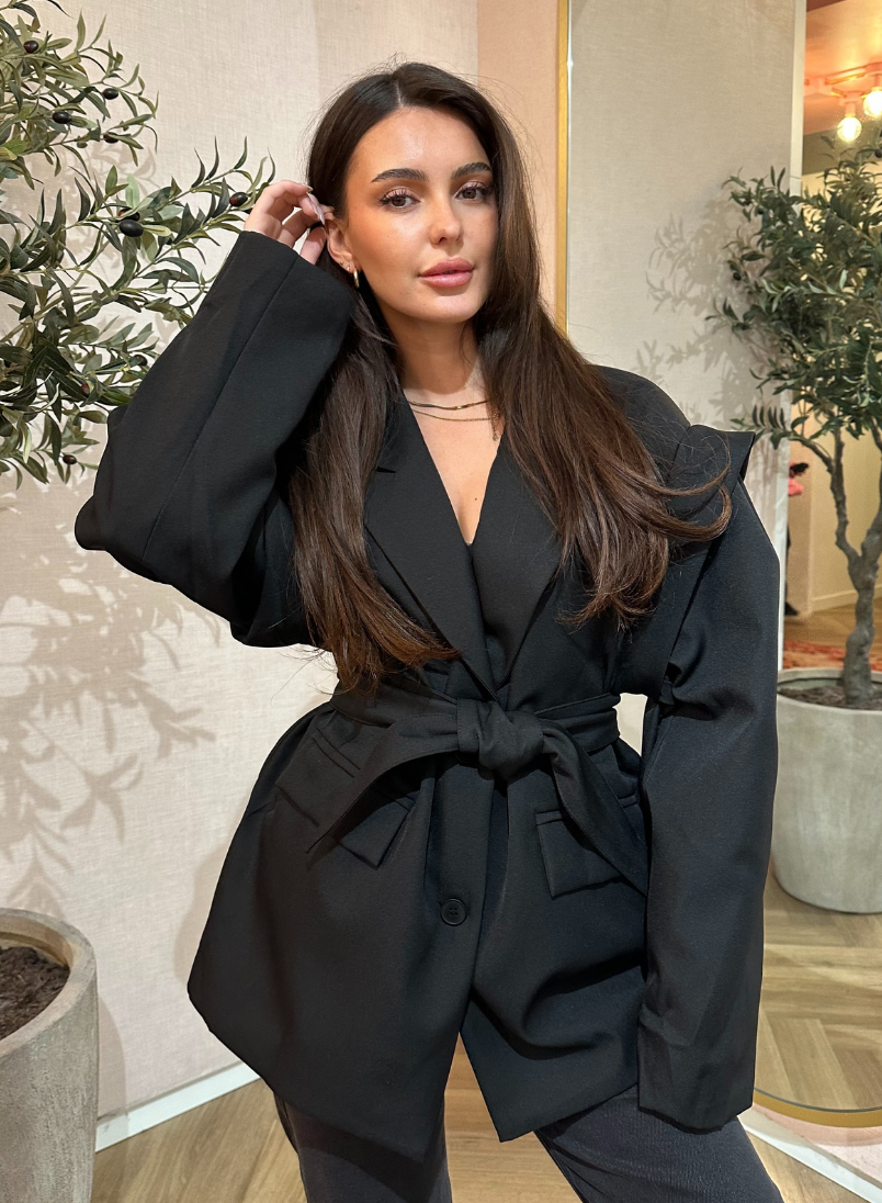De Wales Blazer – Black is de ultieme blazer die kracht en elegantie combineert. Dankzij de oversized fit, rechte schouders en de strikceintuur accentueer je eenvoudig je taille voor een vrouwelijke, maar stoere look. De tijdloze zwarte kleur maakt dit item eindeloos draagbaar – van kantoor tot een night out. Draag hem casual met denim of stijlvol over een jurk of pantalon.