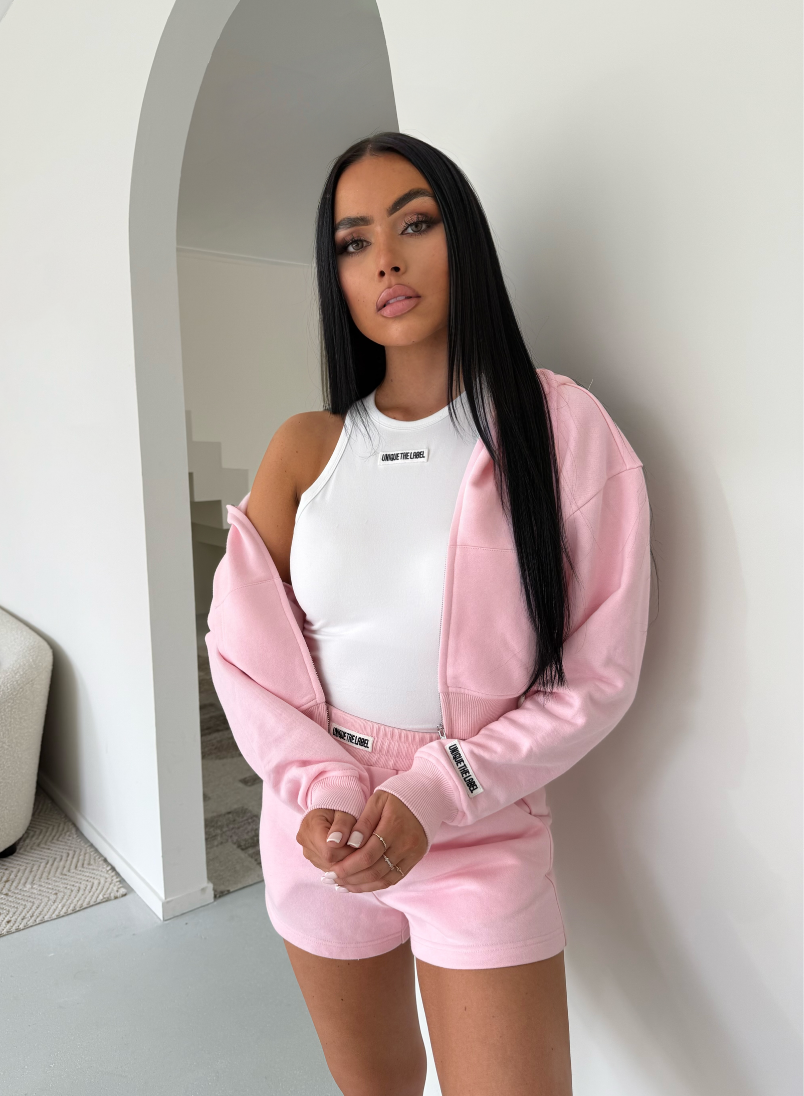 De MOLLY SHORTS - Powder Pink van Unique The Label zijn dé perfecte combinatie van stijl en comfort. Gemaakt van superzacht katoen en voorzien van een elastische tailleband met logo detail, zijn deze shorts ideaal voor een relaxte maar fashionable look. Combineer met het bijpassende Molly vest voor een complete loungewear set, of style het met een van de populaire Nena tops voor een sportieve vibe met een vrouwelijke touch.