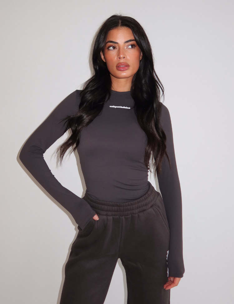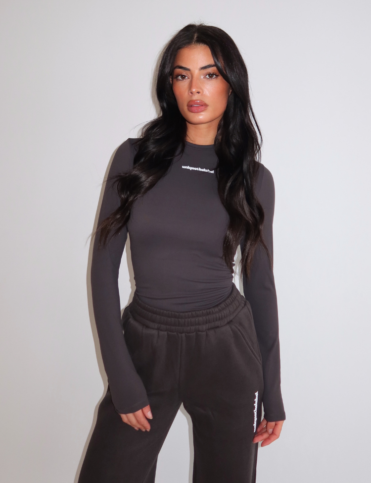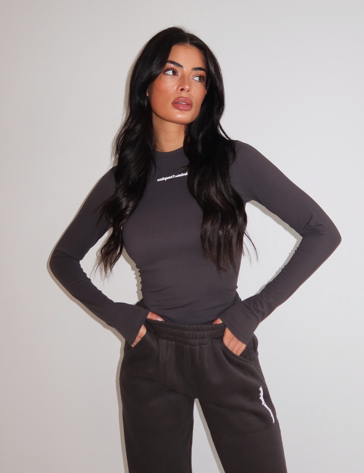 De diepe charcoal kleur maakt deze long sleeve stoer en veelzijdig. Het subtiele witte logo van Unique The Label op de borst zorgt voor een minimalistisch detail. Combineer met de bijpassende jogger voor een stijlvolle co-ord look of draag ’m op een jeans voor een effortless outfit.